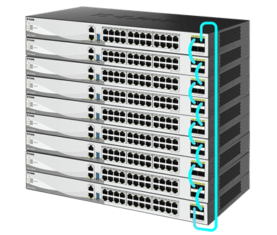 • Empilage physique jusqu’à 9 unités via 4 ports 25G