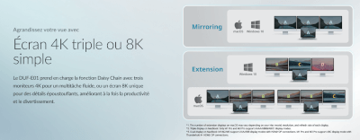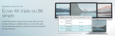 Triple affichage 4K à 60 Hz : Extension ou duplication sur les ports HDMI 2,1, DP 1,4 et Thunderbolt 4