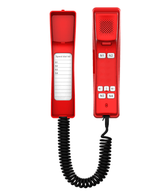 Téléphone IP mural d'urgence avec clavier offre un audio HD (G.722 et Opus), 2 lignes SIP, et PoE, une touche DSS programmable et de 4 touches de numérotation rapide. Il peut être installé sur un bureau ou un mur.