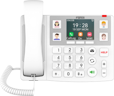 Téléphone IP à grosses touches avec écran couleur 3,5”, 4 lignes SIP, touches numériques avec points braille, grand volume, 4 boutons programmables (photo personnalisable), WiFi 2.4GHz et 5GHz intégré