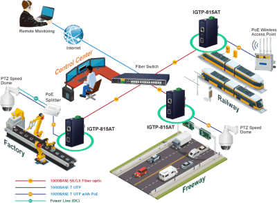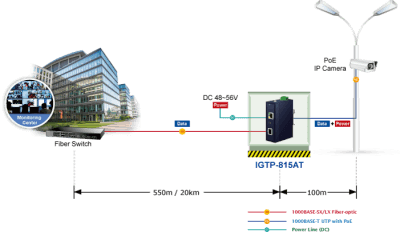 Convertisseur de média industriel + injecteur PoE 1 port Giga (10/100/1000BASE-T) PoE at / 1 port SFP Giga (100/1000BASE-X) (IP30) -40/+75°C