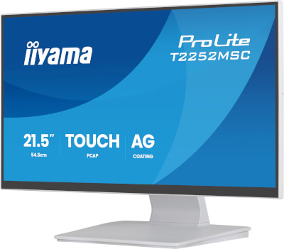 Moniteur à écran tactile PCAP+ 10 points de 21.5” DeepContrast, doté de la technologie de dalle IPS, d’un design en verre bord à bord et d’un revêtement anti-traces de doigts et antireflet