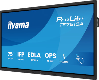 L’élégance et la fonctionnalité s’unissent dans le ProLite TE7515A -B1AG. Ce modèle 75” 4K UHD offre non seulement précision et performance, mais aussi une allure haut de gamme pour les environnements éducatifs et professionnels collaboratifs.