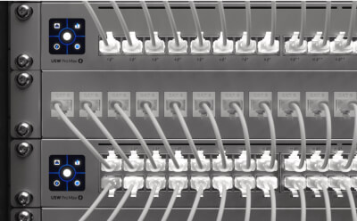 Câble patch nano-fin avec une gaine translucide conçue pour montrer les effets Etherlighting™ lorsqu'il est connecté aux switch UniFi compatible