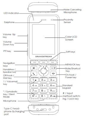 Téléphone IP Wi-Fi robuste avec 3 comptes SIP, écran couleur 2,4″, Wi-Fi 6, Bluetooth intégré, autonomie 12 h en conversation, push-to-talk, bouton d’urgence, IP67, et gestion centralisée via GDMS.