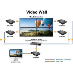 Déport et mur vidéo HDMI 4K over IP récepteur PoE