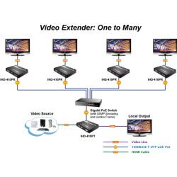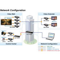 Déport et mur vidéo HDMI 4K over IP transmet. PoE