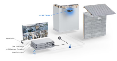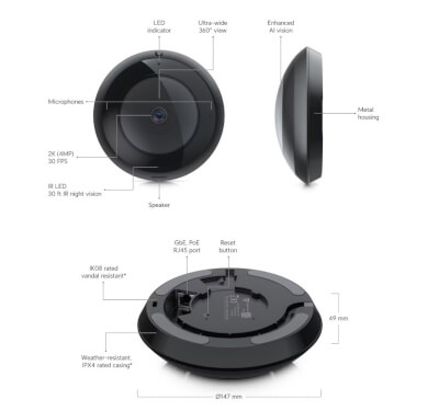 Caméra PoE 2K intérieure/extérieure avec fonctionnalité panoramique-inclinaison-zoom offrant une surveillance complète à 360°.