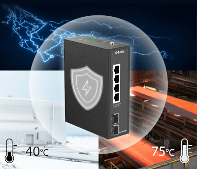 Switch Industriel 4 Ports Gigabit & 2 ports SFP - Format Rail-DIN - Température étendue -40°C à +75°C