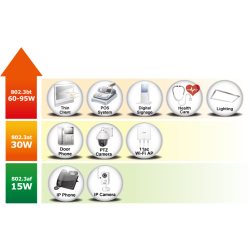 PoE 802.3 af (15,4W) PoE 802.3 at (30W) PoE 802.3 bt (60W)