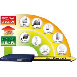 PoE 802.3 af (15,4W) PoE 802.3 at (30W) PoE Extended