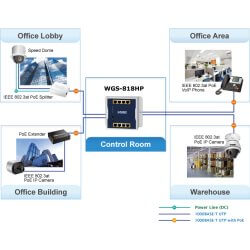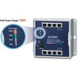 Le budget PoE du switch dépend de l'alimentation industrielle qu'on lui associe. C'est la puissance de celle-ci moins les quelques Watts consommés par le switch lui-même... (C'est évidemment aussi dans la limitation, des normes af, at ou bt multipliées par le nombre de ports PoE)