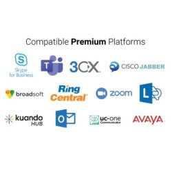 - avec les principaux softphones du marché : 3CX (uniquement avec le client "lourd" 3CXPhone pour Windows*), Teams, Skype, Jabber, Avaya, Zoom et bien d'autres ...